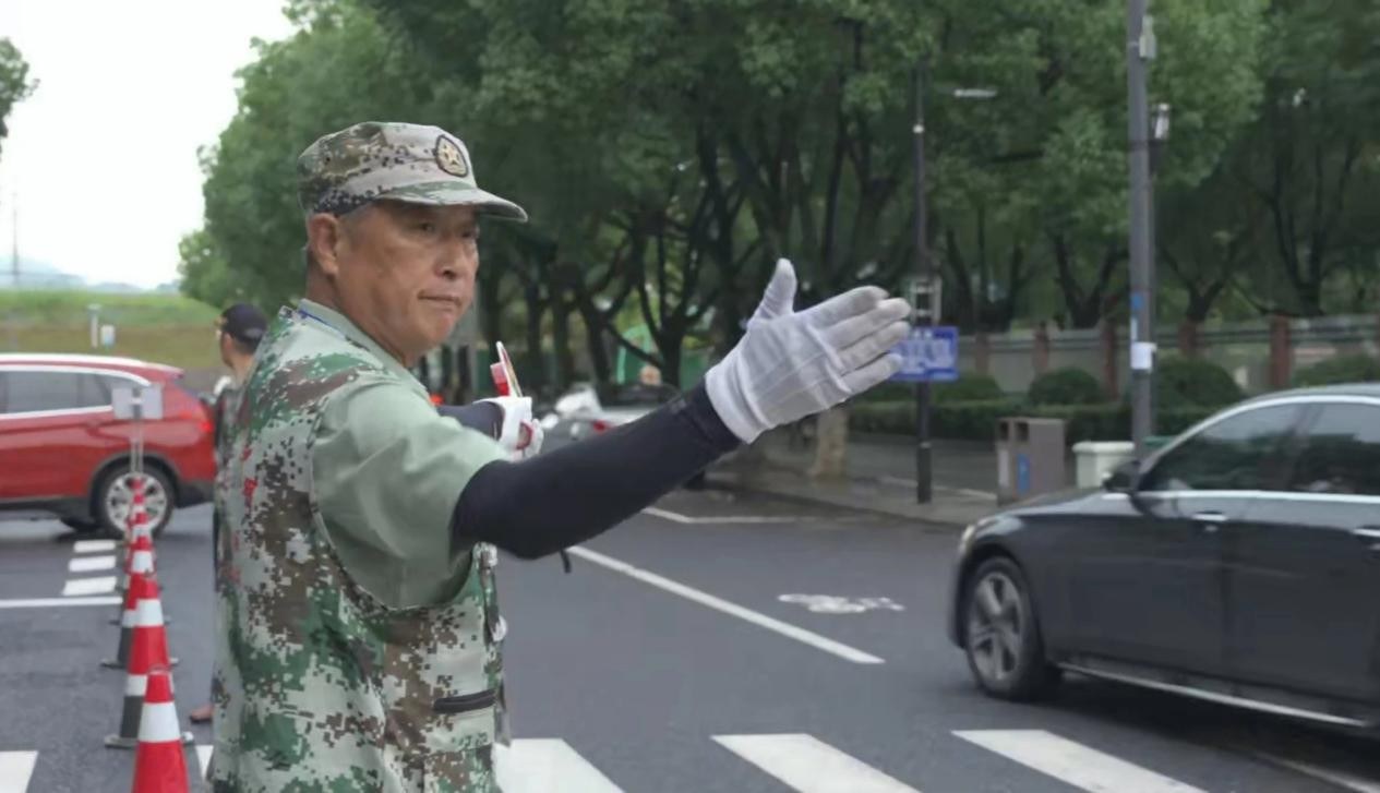 没有号召,没有命令,全凭一腔“为人民服务”的热忱。从那天起,裘法庆便自发当起了校门口的“哨兵”。指挥手势一丝不苟,疏导交通耐心细致,提醒叮嘱声声入耳。“这没什么,就是想做点力所能及的事情。”这句轻描淡写的话背后,是十二个春秋的执着坚守。无论是盛夏酷暑的汗流浃背,还是三九严寒的凛冽刺骨,抑或是风雨交加的清晨,他的身影从未缺席。渐渐地,那身或许已显旧色的迷彩服或红马甲,成了校门口最令人安心的标志。孩子们亲切地唤他“兵爷爷”“红绿灯爷爷”。