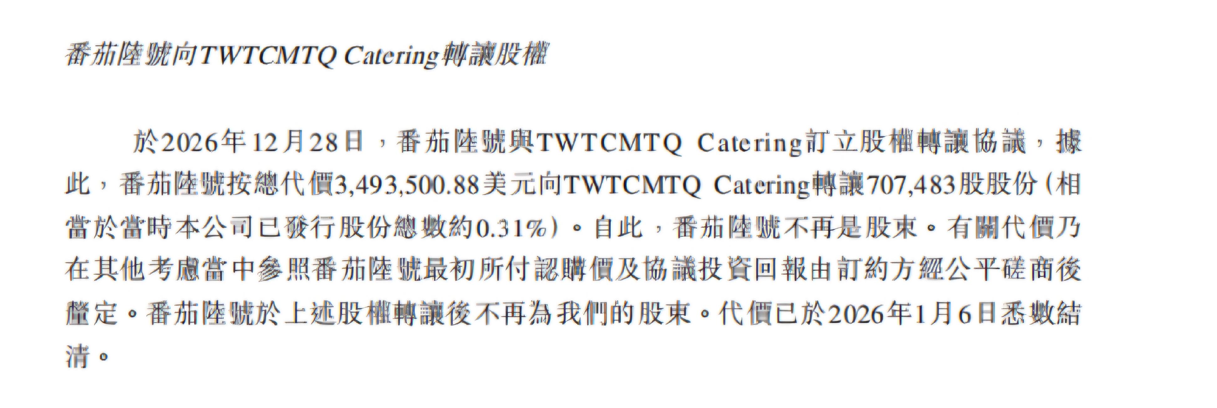 此外,经济观察报发现,其招股书中出现了一个错误,其显示2026年12月28日,投资机构番茄六号曾转让股权给极物思维的另一股东方,代价已于2026年1月6日悉数结清,因此签订协议的时间应为“2025年12月28日”。